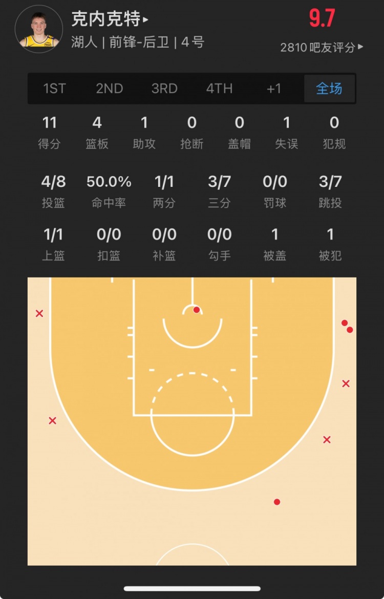 湖人17號秀 道爾頓-克內克特 登場20.6分鐘