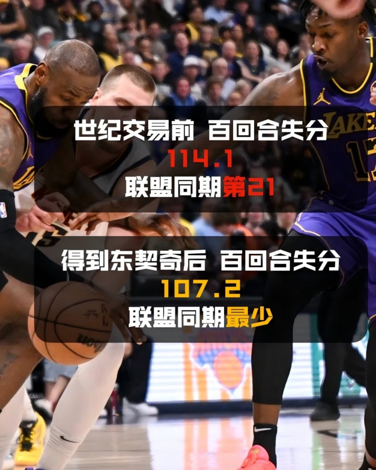 而比起進攻端如虎添翼,令人驚訝的是,他們在防守端更是打出了前所未有的質量。在一個被質疑“防守有巨大問題”的東契奇加入之后,湖人隊反而成為百回合失分同期最少的球隊。他們每百回合足足少丟了6.9分,成為交易日后聯(lián)盟獨一檔的防守鐵軍。