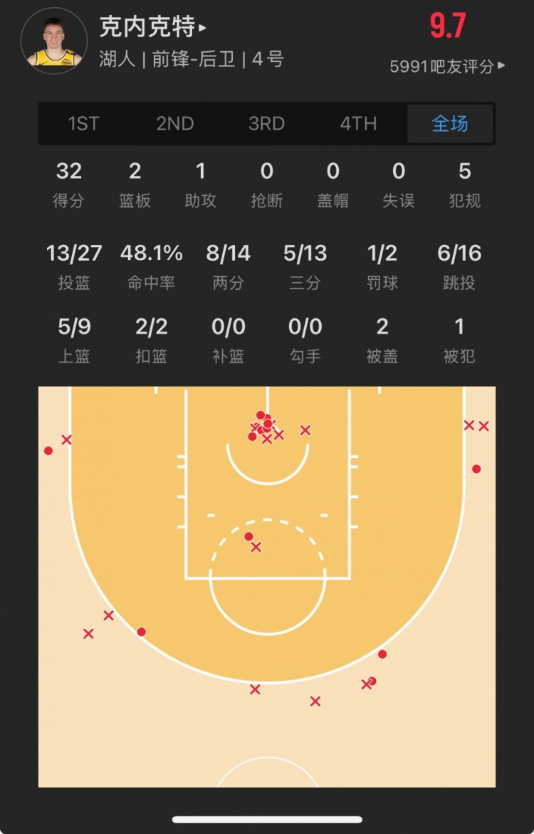 菜鳥丨克內(nèi)克特27中13砍32分 卡斯爾26分 布朗尼15分鐘5中1得5分