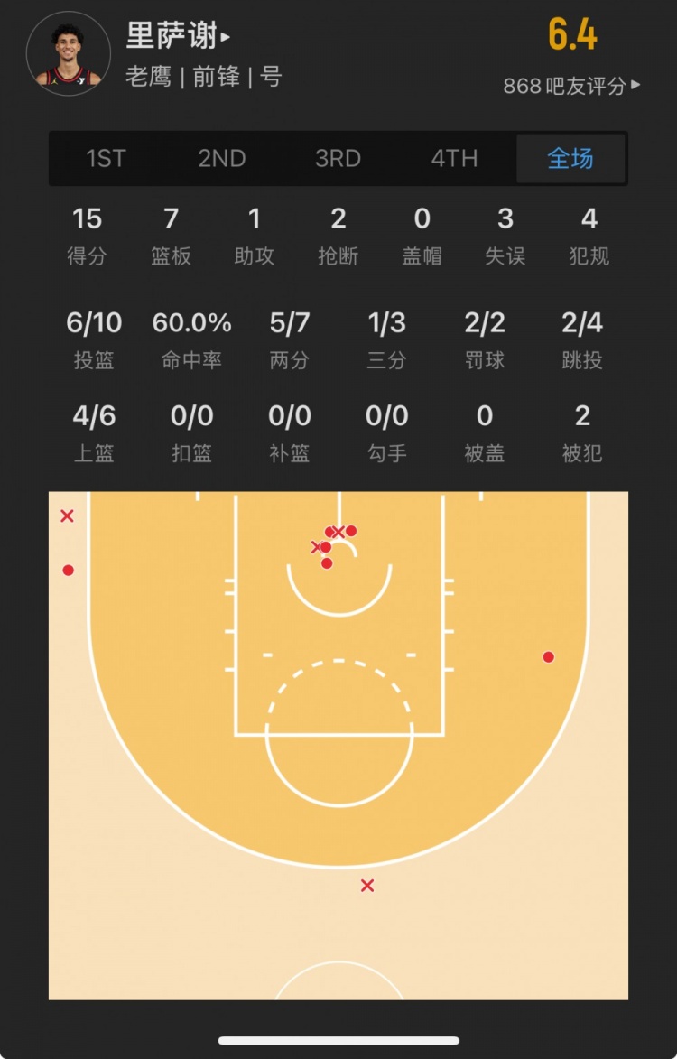 76人落選秀 亞歷克斯-里斯 登場18.5分鐘