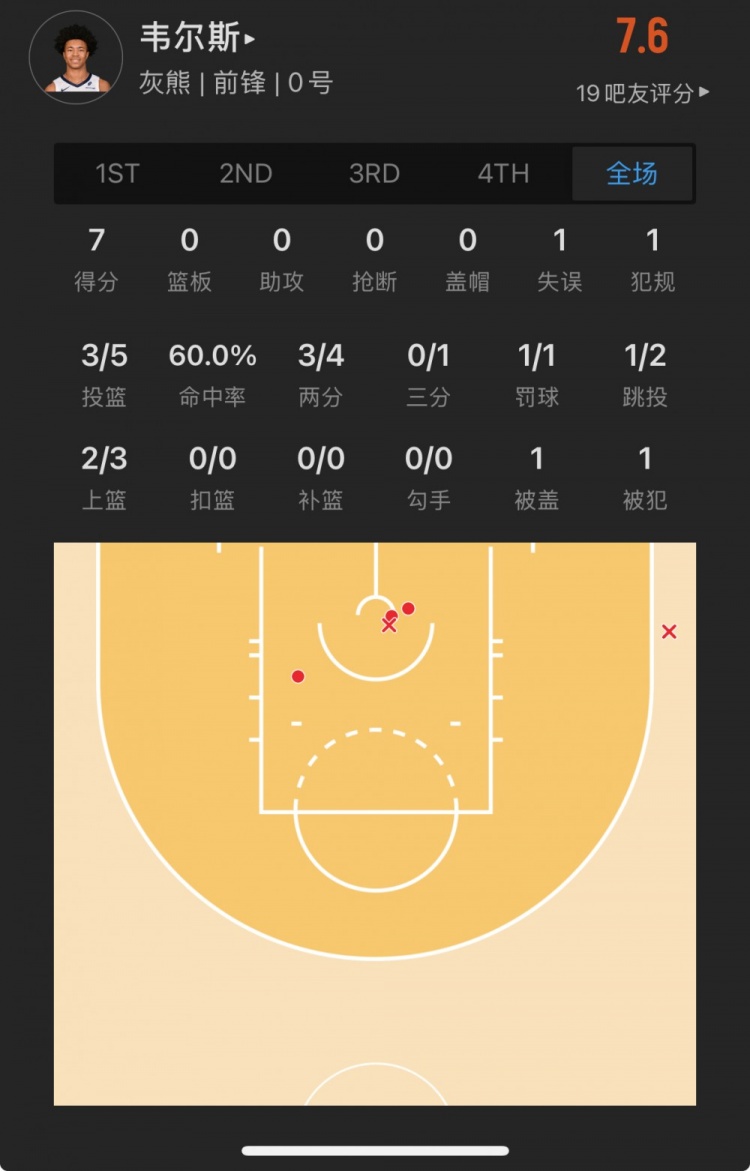 灰熊39號秀 杰倫-韋爾斯 登場16.7分鐘