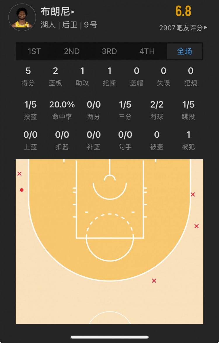 湖人55號秀 布朗尼-詹姆斯 登場15.7分鐘