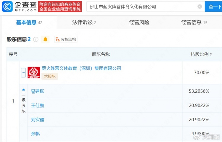 企查查APP顯示,易建聯(lián)關(guān)聯(lián)15家企業(yè),其中12家為存續(xù)狀態(tài),包括薪火陣營(yíng)文體教育(深圳)集團(tuán)有限公司、上海壹球成名信息技術(shù)有限公司等。此外,易建聯(lián)間接持股企業(yè)超200家,行業(yè)涉及除體育文化外,還包括商貿(mào)、科技、投資等領(lǐng)域。今年2月,易建聯(lián)關(guān)聯(lián)企業(yè)佛山市薪火陣營(yíng)體育文化有限公司成被執(zhí)行人,執(zhí)行標(biāo)的約12萬元。