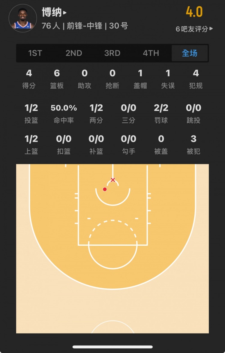 76人41號秀 阿德姆-博納 登場16.5分鐘