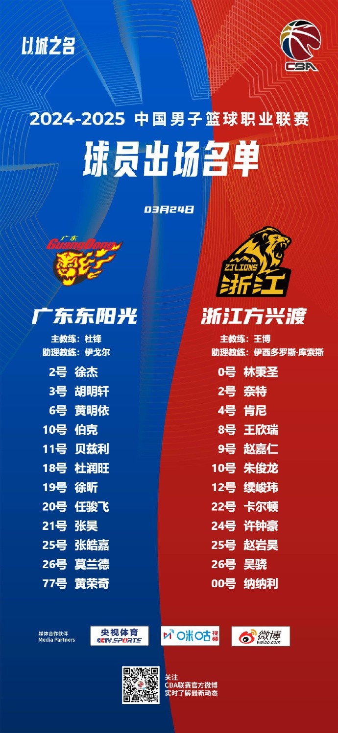廣東隊(duì):徐杰、胡明軒、黃明依、伯克、貝茲利、杜潤(rùn)旺、徐昕、任駿飛、張昊、張皓嘉、莫蘭德、黃榮奇。