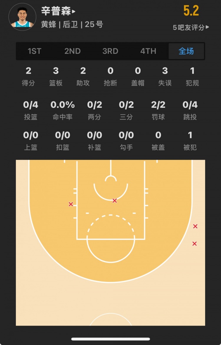 黃蜂42號(hào)秀 KJ-辛普森 登場(chǎng)22.1分鐘