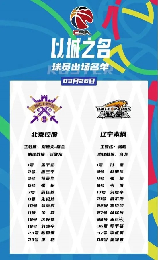 3月26日訊 今晚7點35分,北控男籃將在主場迎戰(zhàn)遼寧男籃。