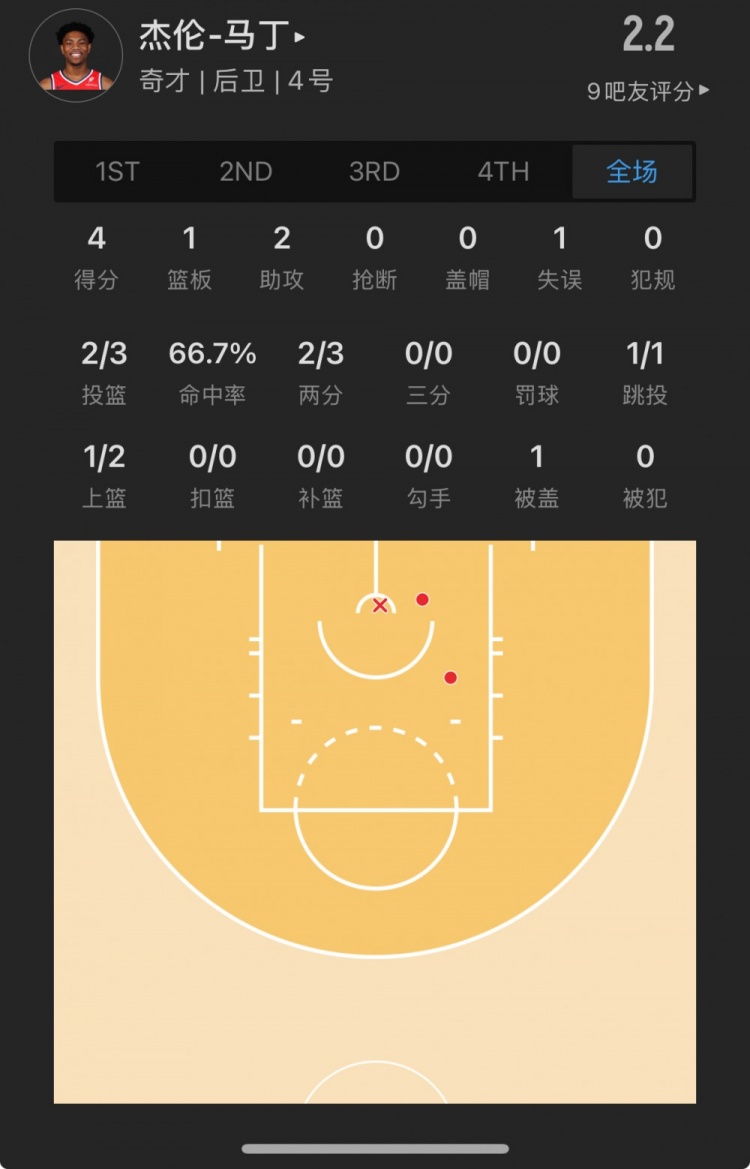 奇才落選秀 杰倫-馬丁 登場22.5分鐘