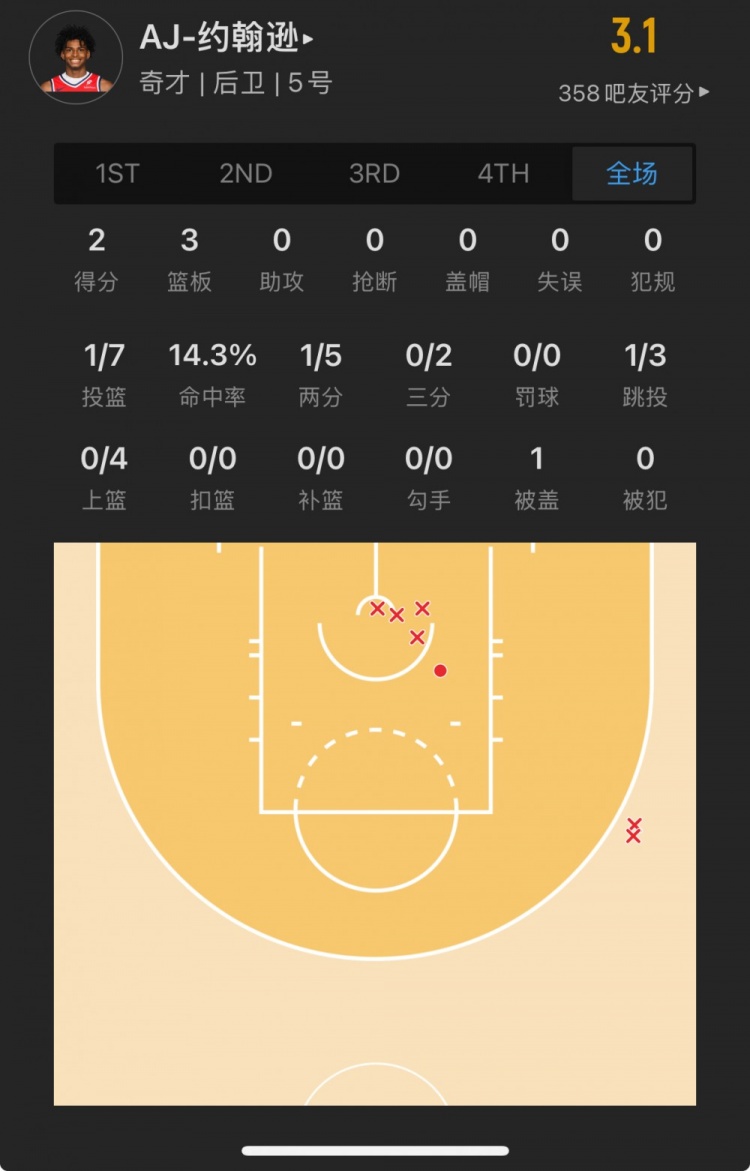 奇才23號秀 AJ-約翰遜 登場26.6分鐘