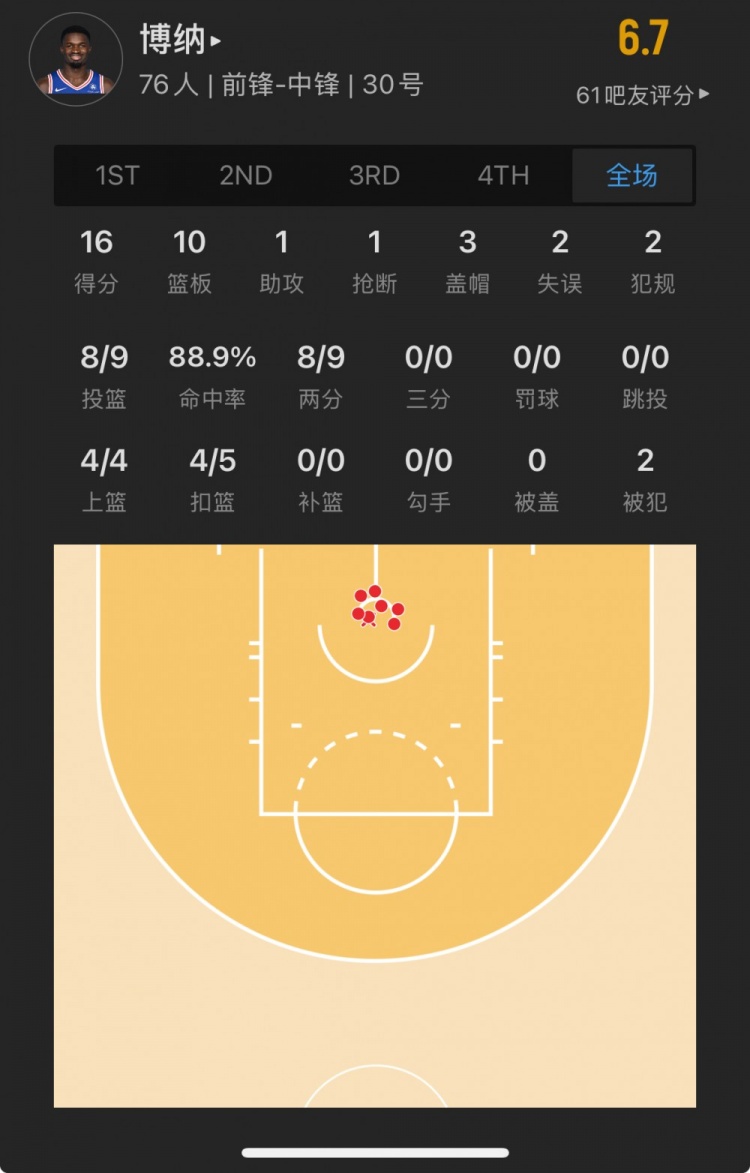 76人41號(hào)秀 阿德姆-博納 登場(chǎng)29.6分鐘