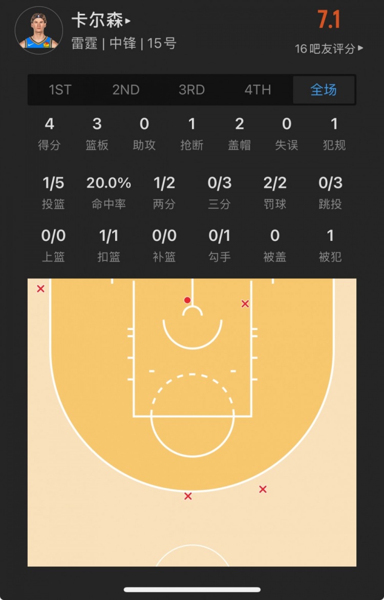 雷霆26號(hào)秀 狄龍-瓊斯 登場(chǎng)12.9分鐘