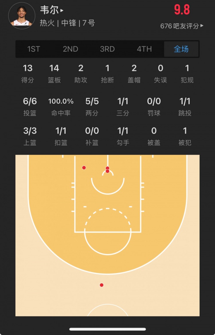 熱火15號(hào)秀 克雷爾-韋爾 登場(chǎng)30.5分鐘