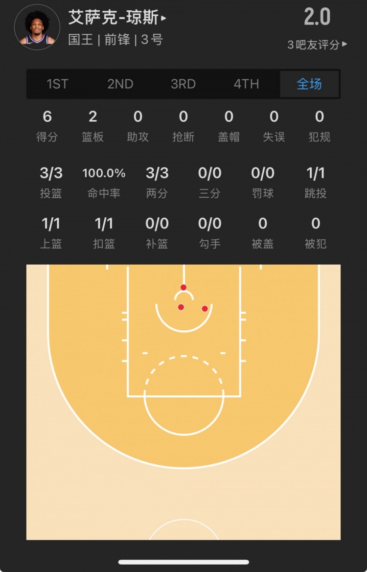 國(guó)王落選秀 艾薩克-瓊斯 登場(chǎng)9.7分鐘
