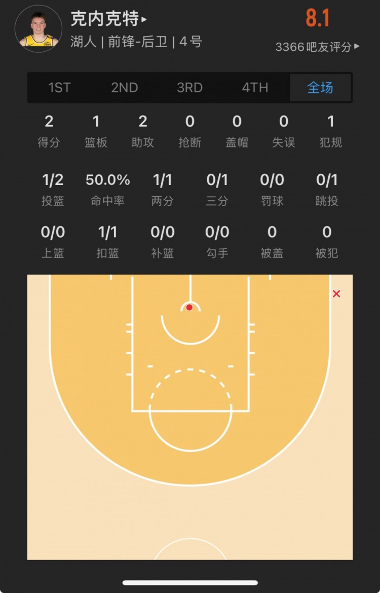 湖人17號(hào)秀 道爾頓-克內(nèi)克特 登場(chǎng)5.4分鐘
