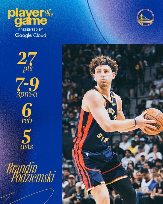 賽后,勇士官方發(fā)布波杰姆斯基本場(chǎng)數(shù)據(jù)海報(bào),并寫道:“生涯之夜!本場(chǎng)最佳球員!”