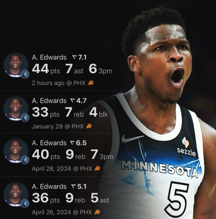 據(jù)統(tǒng)計(jì),過(guò)去4場(chǎng)和太陽(yáng)的交手(含2場(chǎng)季后賽),愛德華茲場(chǎng)均38.3分7.5板5.8助,進(jìn)4.3記三分,三項(xiàng)命中率55/43/91%。