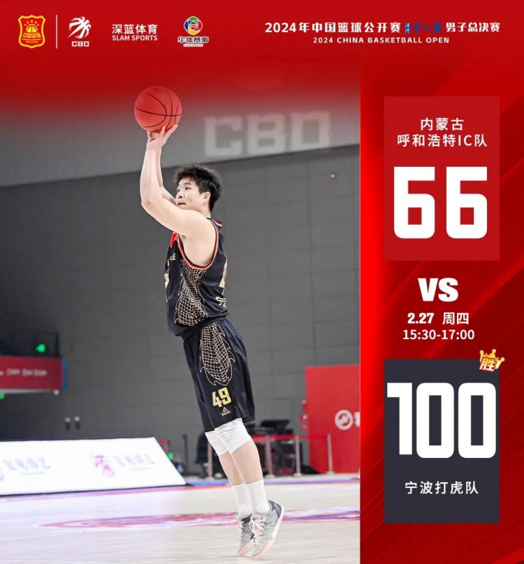 上半場(chǎng),寧波打虎一開(kāi)場(chǎng)就展現(xiàn)了超強(qiáng)的得分能力,以16-5領(lǐng)先。內(nèi)蒙古IC通過(guò)外線連續(xù)三分,不斷追分。但在快攻的情況下,內(nèi)蒙古IC失誤增多,且命中率下降。半場(chǎng)結(jié)束,寧波打虎50-26領(lǐng)先內(nèi)蒙古IC。下半場(chǎng),兩隊(duì)之間的實(shí)力差距愈發(fā)明顯,寧波打虎最終以100-66戰(zhàn)勝內(nèi)蒙古IC。