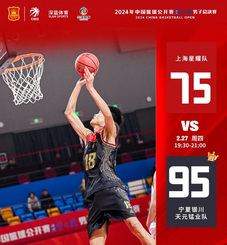 上半場(chǎng),兩隊(duì)打得相對(duì)膠著,比分緊咬。首節(jié)戰(zhàn)至19-18,上海星耀領(lǐng)先一分。次節(jié)28平后,上海星耀24號(hào)劉暢連續(xù)命中三分,21號(hào)高文浩兩分再打中,12號(hào)周顧軒1投1罰得3分,上海星耀打出一波得分小高潮。隨后寧夏天元錳業(yè)奮起直追,上半場(chǎng)結(jié)束,上海星耀47-42領(lǐng)先寧夏天元錳業(yè)。下半場(chǎng),8號(hào)于思洋、29號(hào)于哲扛起寧夏天元錳業(yè)進(jìn)攻大旗,在第三節(jié)實(shí)現(xiàn)反超。末節(jié),上海星耀手感欠佳,寧夏天元錳業(yè)在外線多次投中,繼續(xù)擴(kuò)大領(lǐng)先優(yōu)勢(shì),最終上海星耀75-95不敵寧夏天元錳業(yè)。
