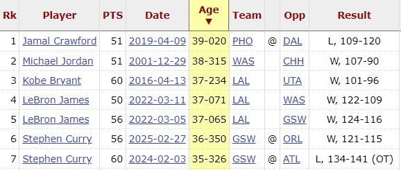 據(jù)統(tǒng)計(jì),哈登以35歲零191天的年紀(jì),成為NBA歷史上第8老的50分先生。