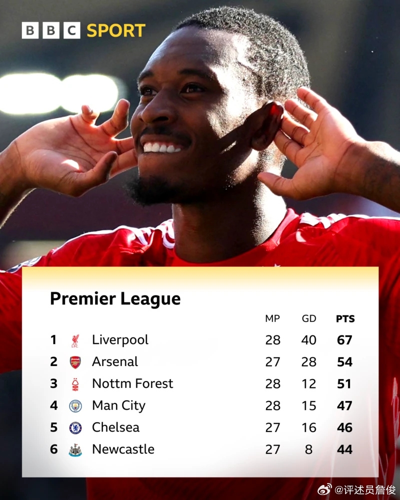 諾丁漢森林贏(yíng)得很有說(shuō)服力,整體的攻防很有彈性,回收迅速反擊堅(jiān)決。努諾-桑托把一支上賽季排名第17的隊(duì)伍帶到第三,知人善用戰(zhàn)術(shù)切合實(shí)際,真有能名帥也!他們本季近30年首次英超主場(chǎng)勝曼城,俱樂(lè)部歷史上首次單季客場(chǎng)先后擊敗利物浦曼聯(lián),配得上下賽季重返歐冠!