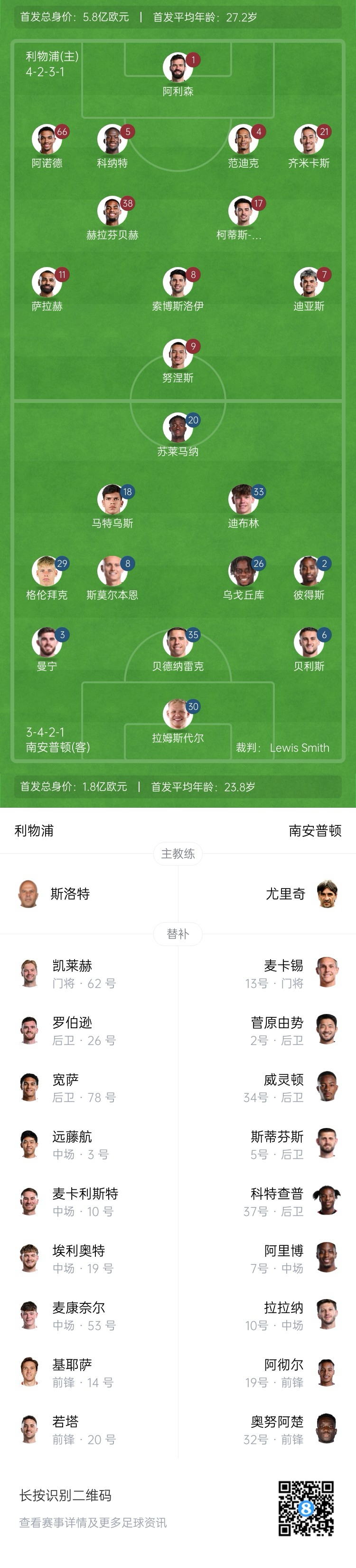 首尾戰(zhàn)!利物浦vs圣徒首發(fā):薩拉赫領(lǐng)銜,努涅斯索博出戰(zhàn)麥卡替補(bǔ)