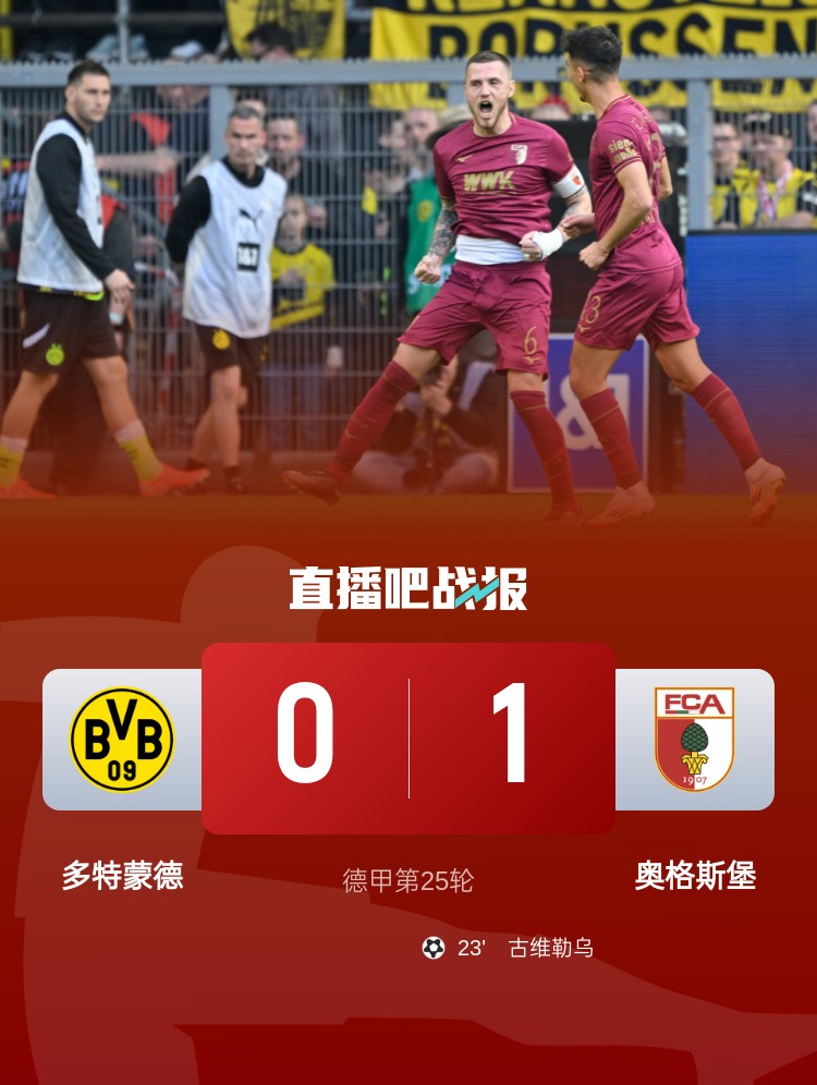 德甲第25輪,多特主場(chǎng)0-1不敵奧格斯堡。上半場(chǎng),古維勒烏頭球吊射破門(mén);下半場(chǎng),布蘭特破門(mén)但越位在先,厄茲詹自擺烏龍但古維勒烏越位在先,埃森德破門(mén)但亞基奇越位。
