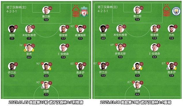 諾丁漢森林的首發(fā)陣容變化幅度很小,努諾-桑托會(huì)充分使用換人名額來為主力球員提供休息機(jī)會(huì)。