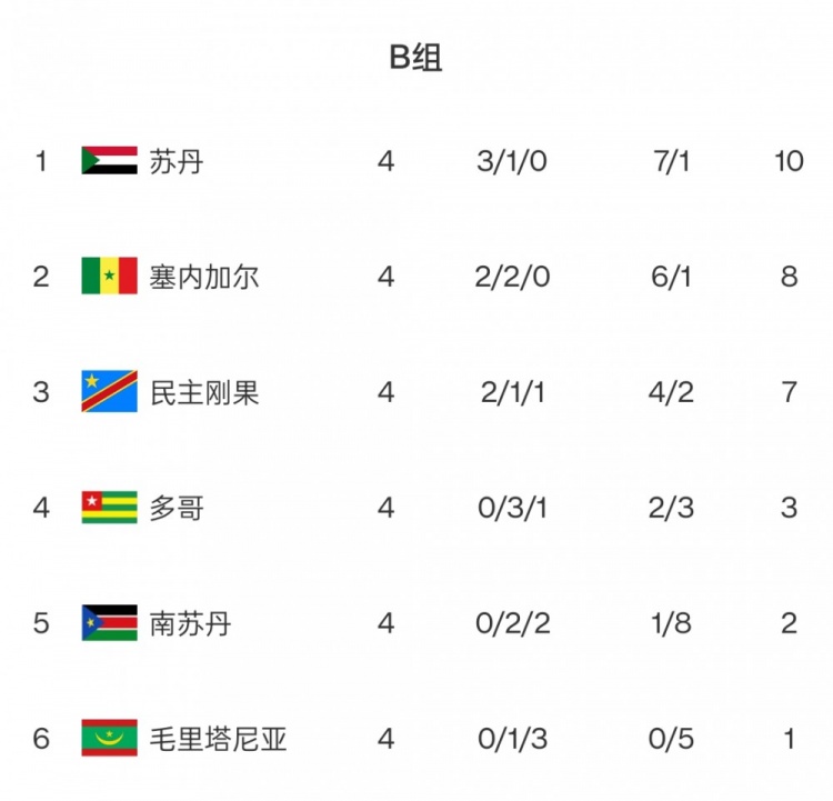 B組:馬內(nèi)領銜的塞內(nèi)加爾意外落后蘇丹,兩隊將于本周五迎來一次正面對決