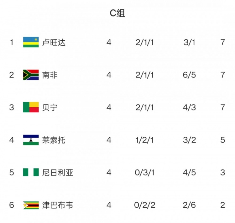 C組:盧旺達、南非、貝寧同積7分,競爭激烈!尼日利亞4輪僅3分,出線告急!