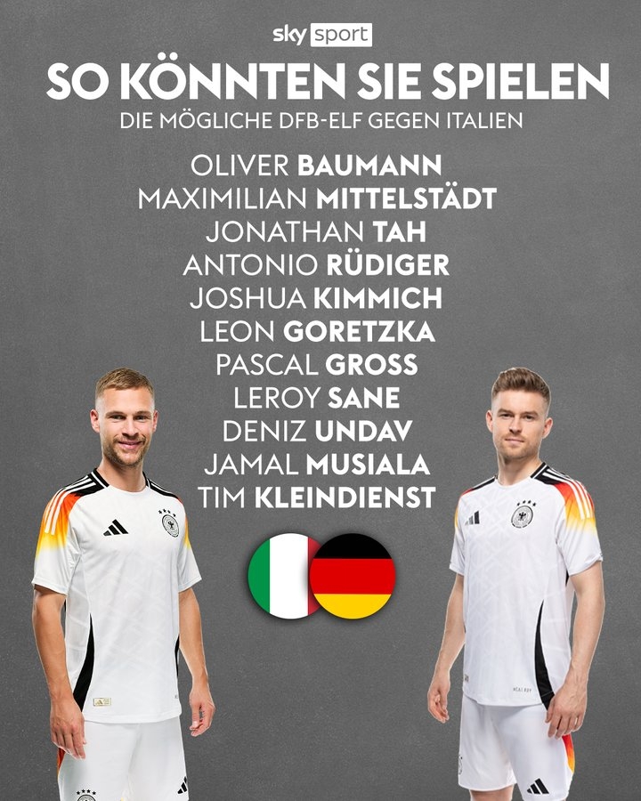 3月20日訊 在3月21日凌晨03:45,歐國聯(lián)1/4賽決賽首回合,德國即將客場挑戰(zhàn)意大利。德天空預(yù)測了德國隊首發(fā)陣容,拜仁多人入選。