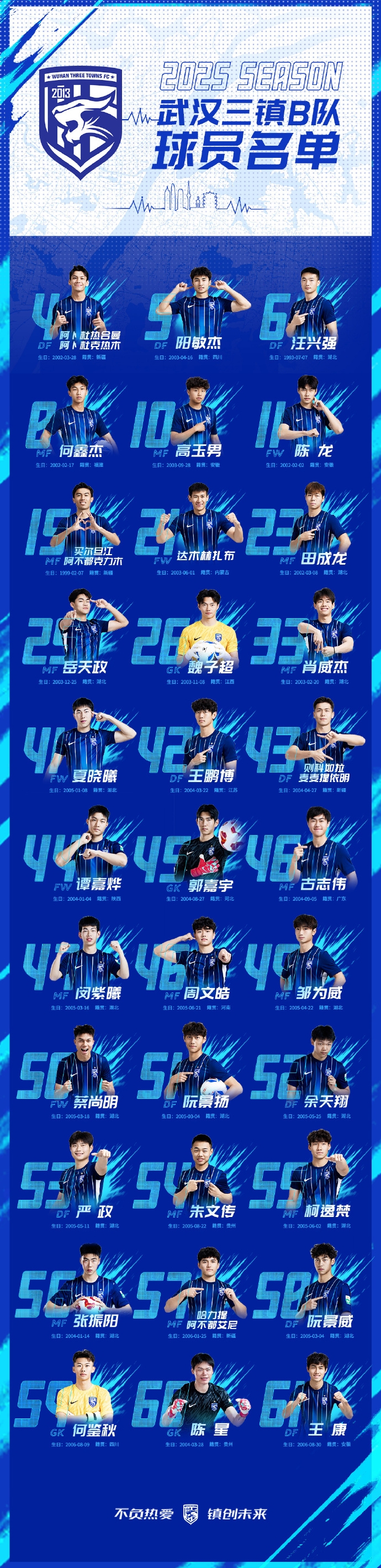 大名單公布!武漢三鎮(zhèn)B隊(duì)新賽季中乙啟程,青春力量再?zèng)_鋒!