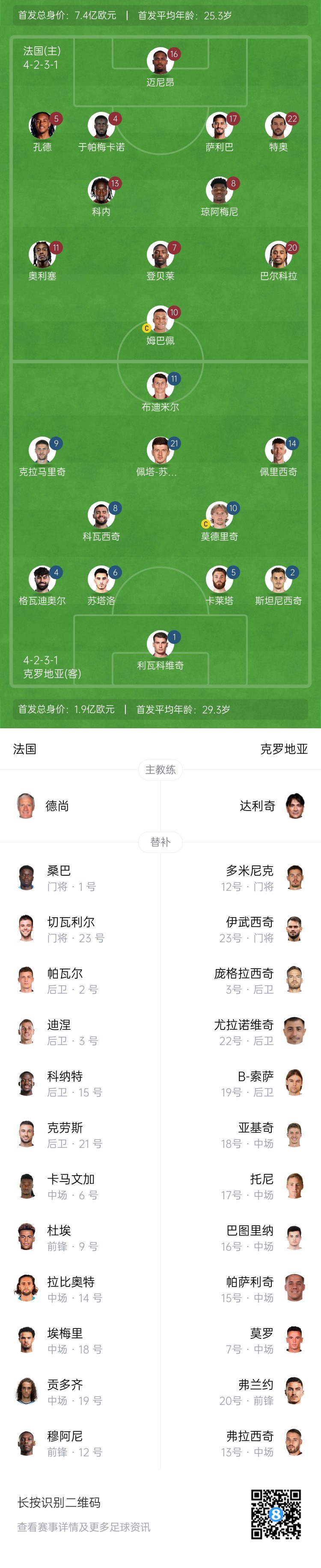 法國vs克羅地亞首發(fā):姆巴佩、登貝萊、巴爾科拉先發(fā),魔笛出戰(zhàn)