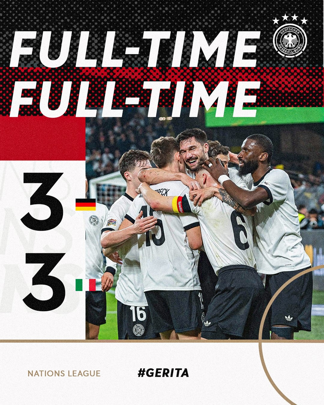 歐國(guó)聯(lián)八強(qiáng)戰(zhàn)次回合,德國(guó)3-3,總比分5-4戰(zhàn)勝意大利晉級(jí),基米希1射2傳,基恩梅開(kāi)二度。