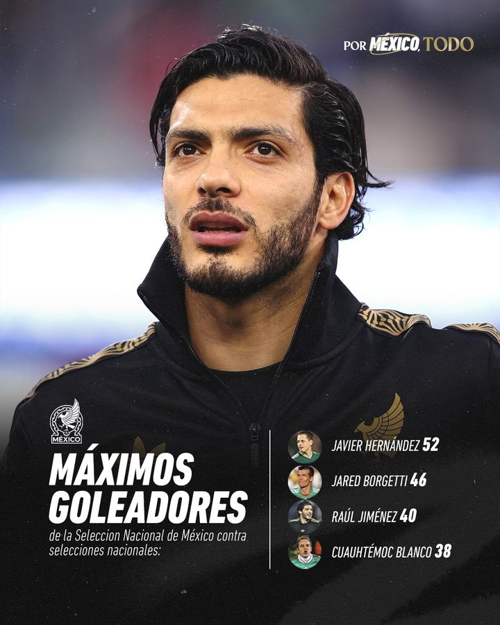 憑借著兩個(gè)進(jìn)球,勞爾-希門尼斯以40球超越了夸烏特莫克-布蘭科,現(xiàn)在來到了墨西哥國家隊(duì)歷史射手榜第三的位置,僅次于46球的哈雷德-博爾格蒂和52球的“小豌豆”哈維爾-埃爾南德斯。