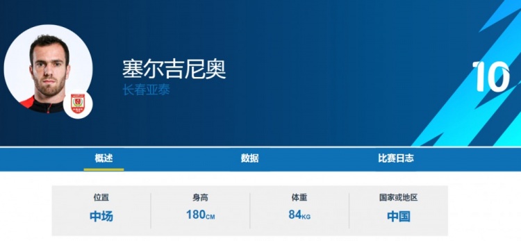 但在塞爾吉尼奧個(gè)人的資料當(dāng)中,中足聯(lián)官網(wǎng)尚未及時(shí)更新,目前顯示的依然是他上賽季的資料。