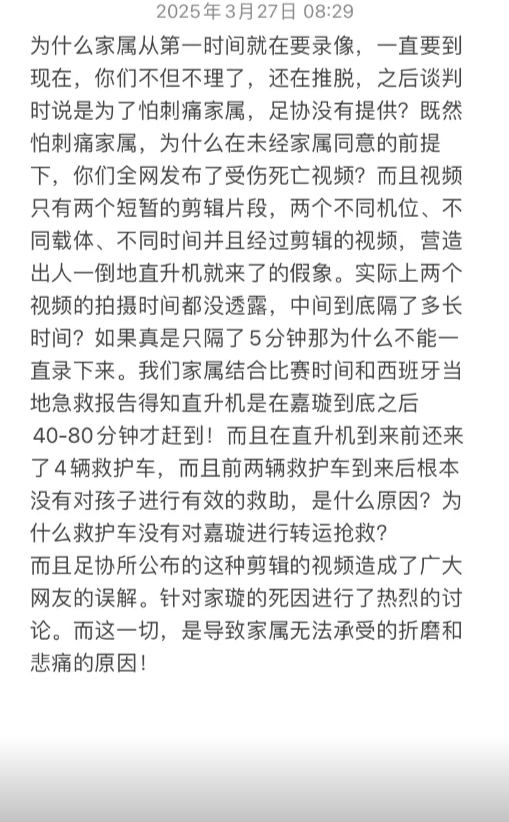 郭嘉璇家屬質(zhì)問(wèn)北京足協(xié):為何視頻不連貫?直升機(jī)40-80分鐘才到