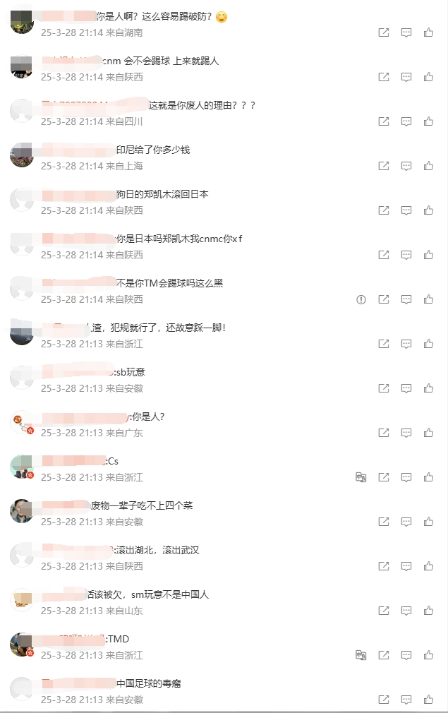 踢傷王鈺棟,鄭凱木微博被沖數(shù)百條:毒瘤、印尼給你多少錢?