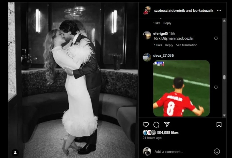 現(xiàn)在這種行為還未結(jié)束,索博昨天曬出自己的結(jié)婚照,評(píng)論區(qū)仍然有很多球迷在刷居勒爾的照片,不少支持索博的球迷則表示:“土耳其愛(ài)哭鬼又來(lái)了?!?/p>