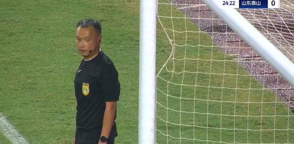 第25分鐘,山東泰山的球網(wǎng)出現(xiàn)問(wèn)題,比賽因此暫停一小會(huì)。↓