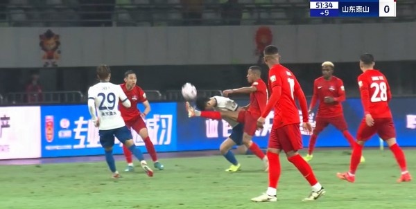 半場(chǎng)-楊超聲精彩倒鉤羅德里格傳射 梅州客家暫3-1山東泰山