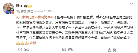 03月29日訊 中超第三輪,天津津門虎1-0青島海牛。媒體人陸洋在微博發(fā)文,稱贊天津主場(chǎng)的軟硬件設(shè)施。
