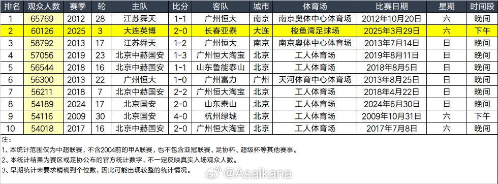 朱藝:今天,本輪(2025賽季中超第3輪)大連英博和長(zhǎng)春亞泰的比賽吸引了60126名觀眾現(xiàn)場(chǎng)觀戰(zhàn),這也是大連英博的首個(gè)中超主場(chǎng)比賽。這一數(shù)據(jù)在中超歷史上排名第二,僅次于2012年南京奧體的65769人。這也是繼那場(chǎng)之后中超聯(lián)賽第二次有超過六萬(wàn)名觀眾現(xiàn)場(chǎng)觀賽。