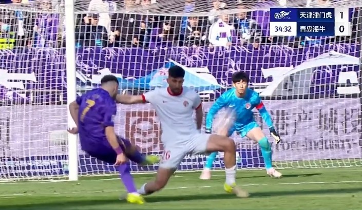 上半場(chǎng),天津津門(mén)虎1-0青島海牛。
