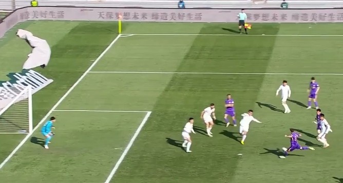 第21分鐘,孫銘謙打門(mén)被封堵,巴頓補(bǔ)射破門(mén),但主裁判經(jīng)VAR確認(rèn)后示意進(jìn)球無(wú)效?!?/p>