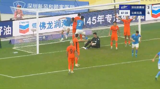 深圳新鵬城3-4云南玉昆 拜合拉木拳擊染紅↓