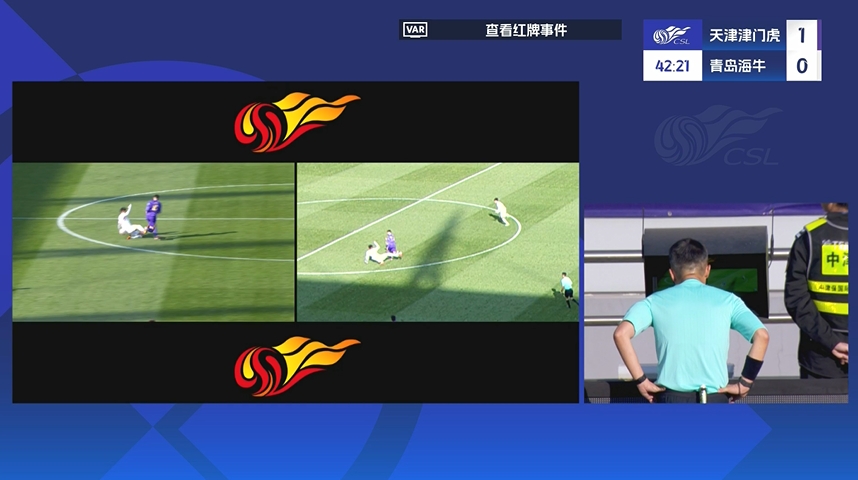 天津津門(mén)虎1-0青島海牛 金洋洋側(cè)面飛鏟染紅↓