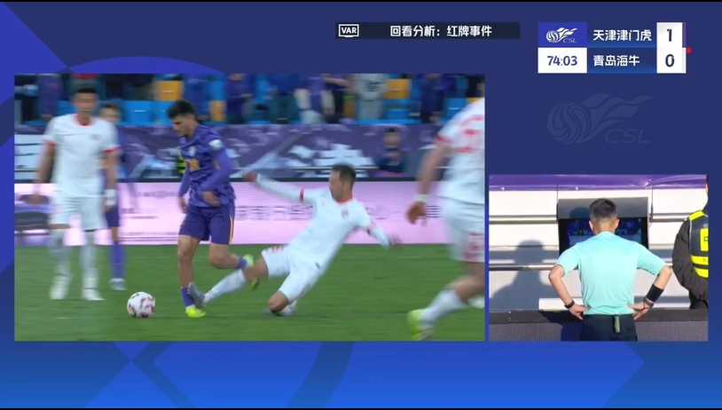 天津津門(mén)虎1-0青島海牛 林創(chuàng)益亮鞋底飛鏟薩爾瓦多腳踝染紅↓