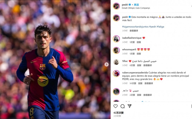 佩德里社媒感謝球迷:主場(chǎng)仿佛有魔力,有你們支持一切都更容易