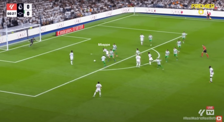 姆巴佩在9月皇馬2比0擊敗皇家貝蒂斯的比賽中攻入了第一粒進球,這表明他現(xiàn)在多大程度上開始充當禁區(qū)掠奪者的角色。