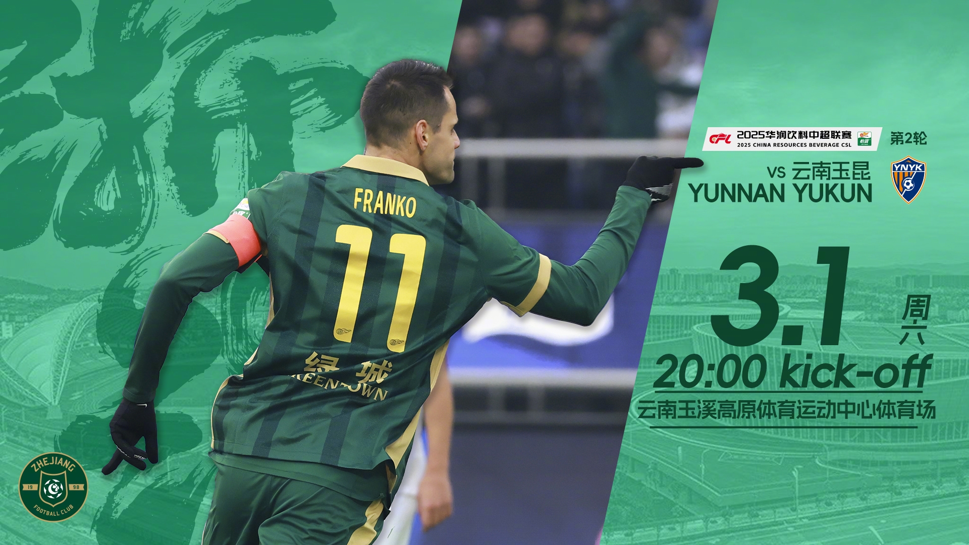 本場(chǎng)比賽將在云南玉昆西高原體育場(chǎng)進(jìn)行。此前首輪中超云南玉昆0-2不敵北京國(guó)安,浙江則是1-1戰(zhàn)平大連英博。